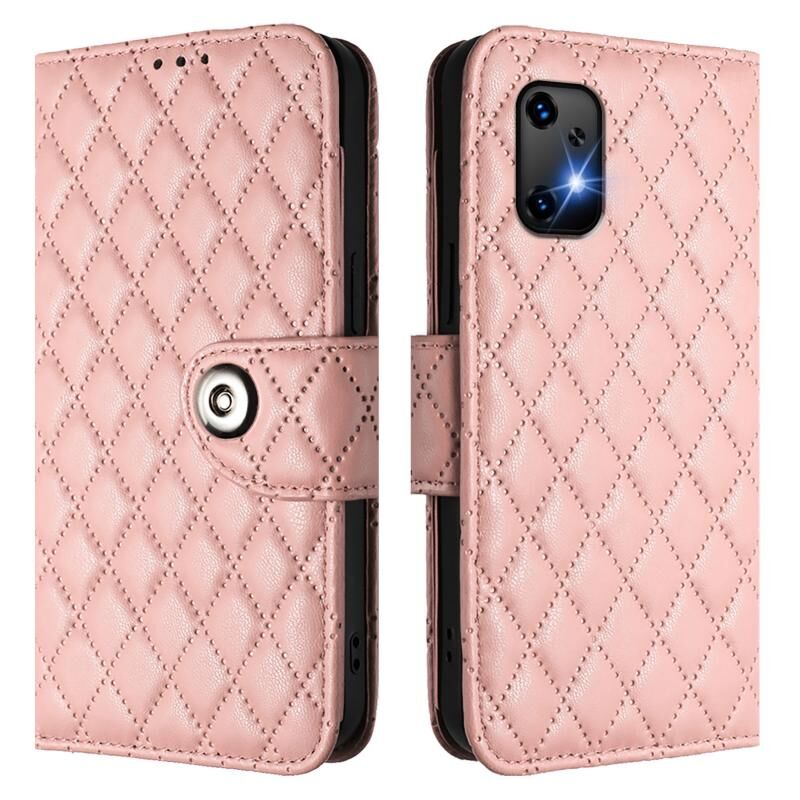 Για UMIDIGI Bison X20 Rhombic υφή Flip υπόθεση τηλεφώνου δέρμα με κορδόνι (Coral Pink)
