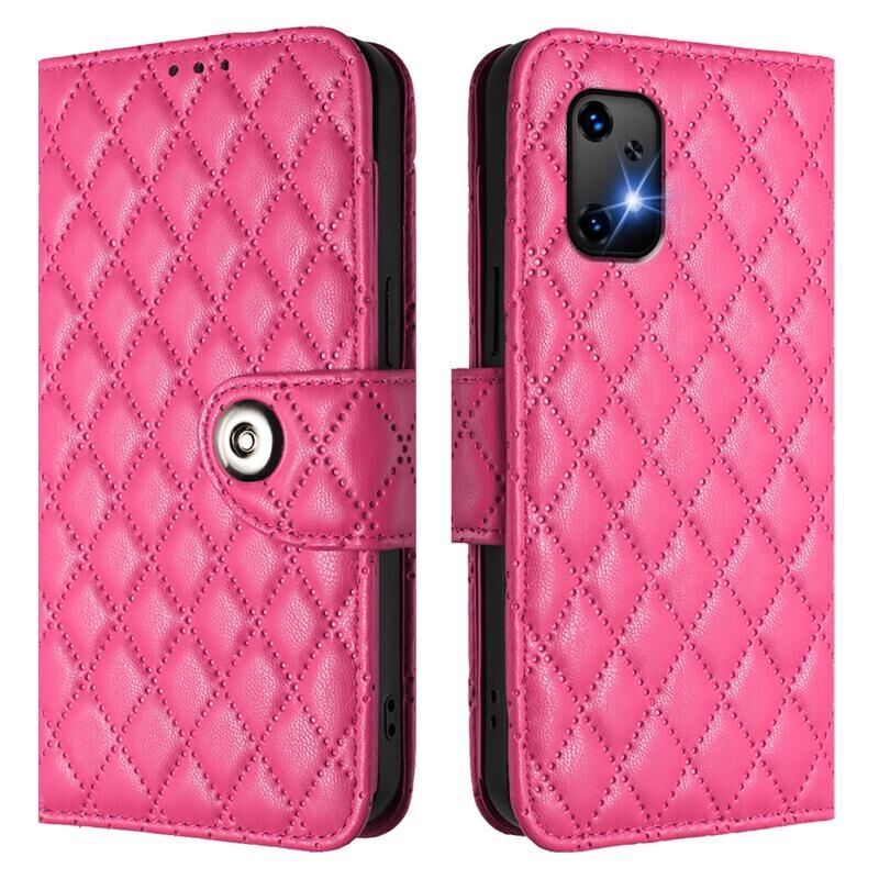 Για UMIDIGI Bison X20 Rhombic υφή Flip δέρμα τηλέφωνο υπόθεση με κορδόνι (Rose Red)