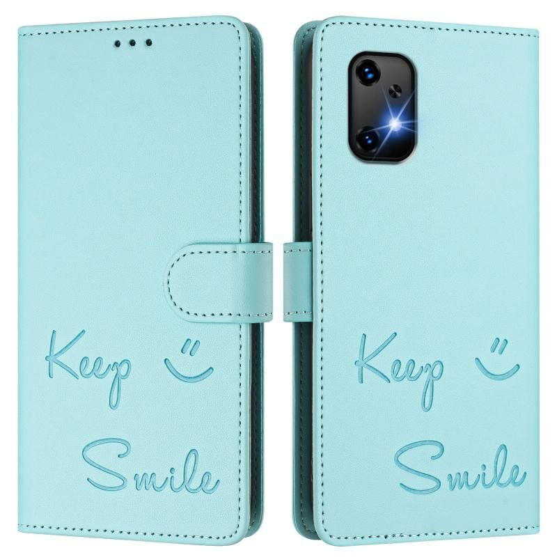 Για Umidigi Bison X20 χαμόγελο ανάγλυφο RFID δερμάτινη θήκη τηλεφώνου (πράσινο χρώμα)