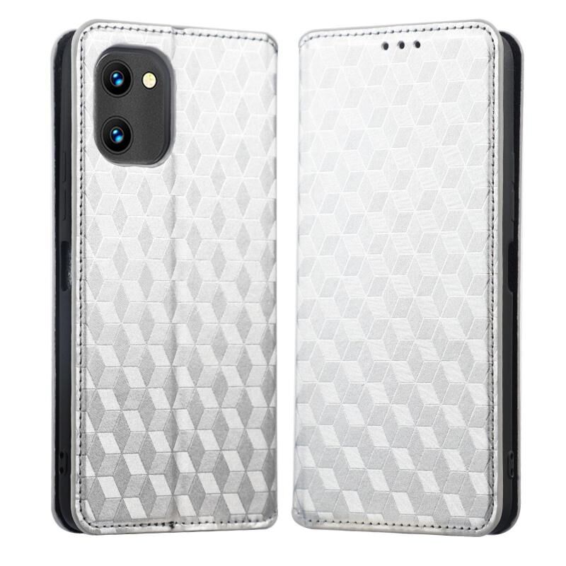 Θήκη τηλεφώνου από δέρμα με ανάγλυφο σχέδιο Cubic Grid για Umidigi C1 / C1 Max (Μαύρο)