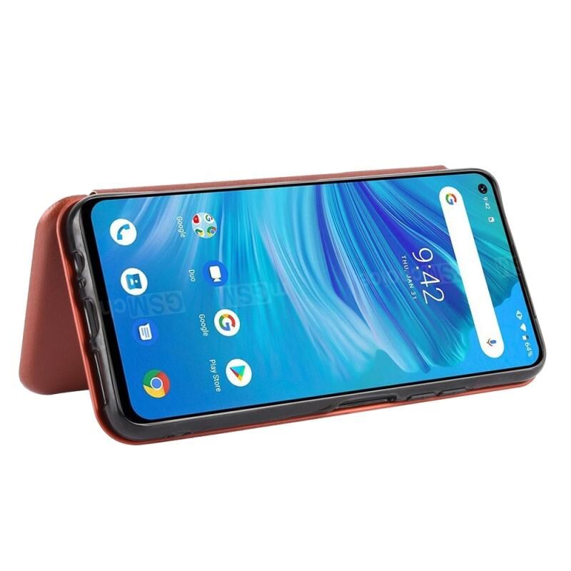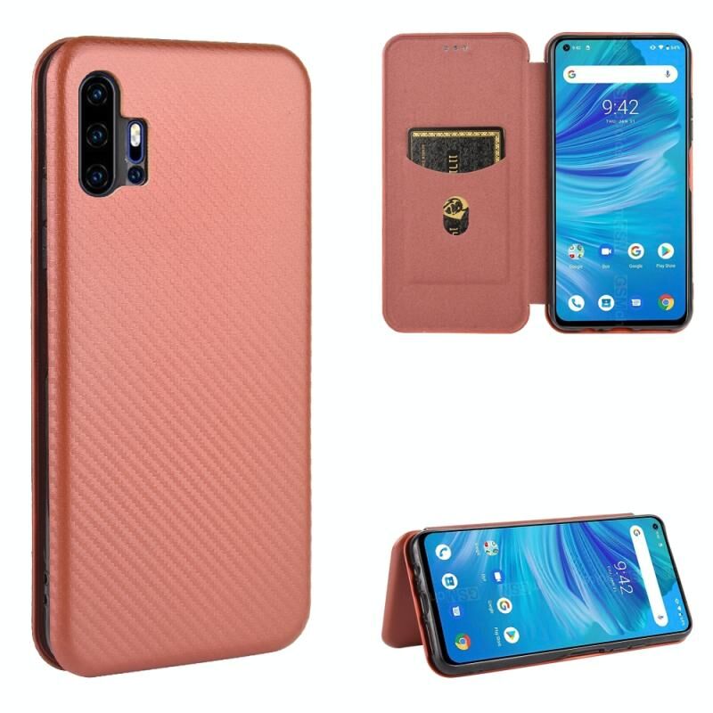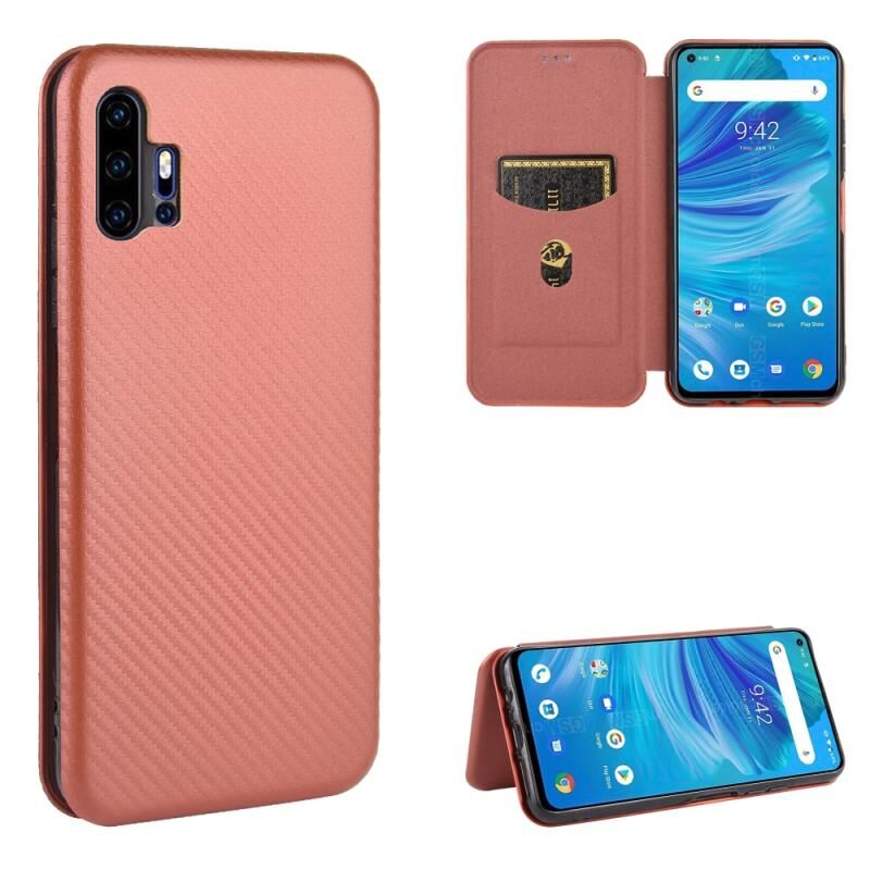 Για UMIDIGI F2 Carbon Fiber υφή οριζόντια Flip TPU + PC + PU δερμάτινη θήκη με υποδοχή κάρτας (καφέ)
