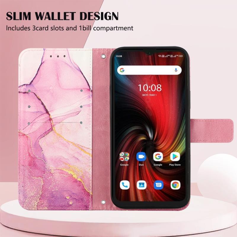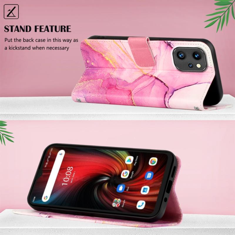 Θήκη τηλεφώνου από δέρμα με σχέδιο μάρμαρου για UMIDIGI F3 4G/F3 5G/F3 SE/F3S PT003 (Ροζ Μωβ Χρυσό LS001)