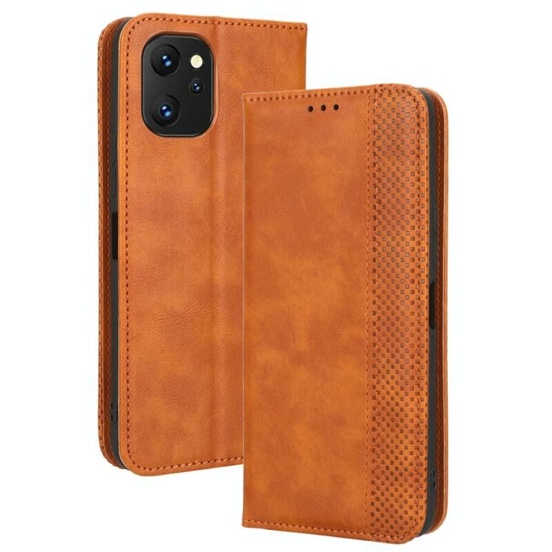 Για UMIDIGI F3 5G / 4G / F3S / F3 SE Μαγνητική πόρπη ρετρό υφή δερμάτινη θήκη τηλεφώνου (καφέ)