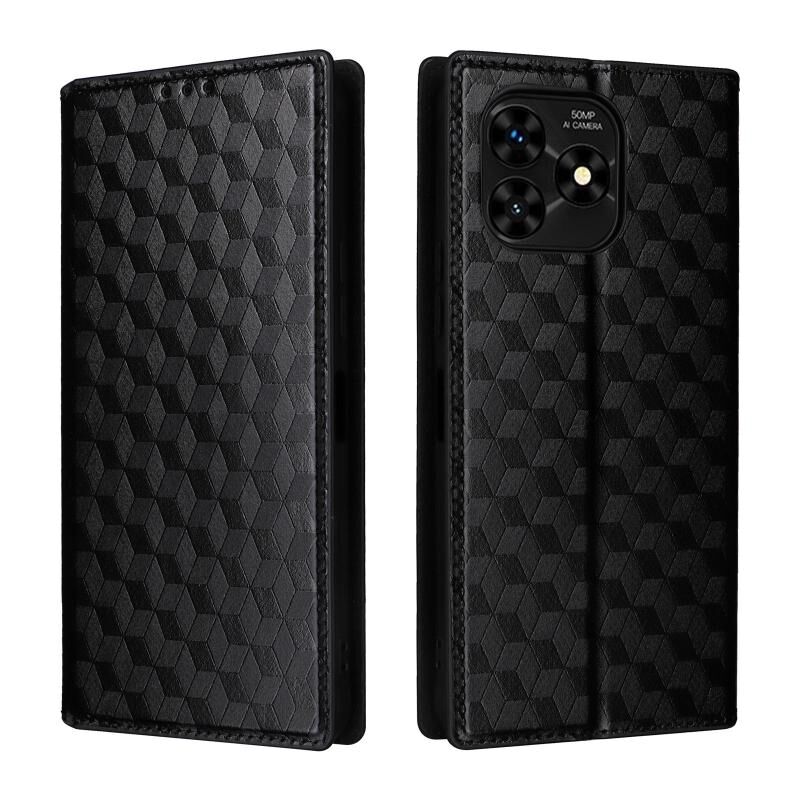 Θήκη τηλεφώνου από δέρμα με ανάγλυφο κυβικό πλέγμα για Umidigi G5 / G5A (Μαύρο)