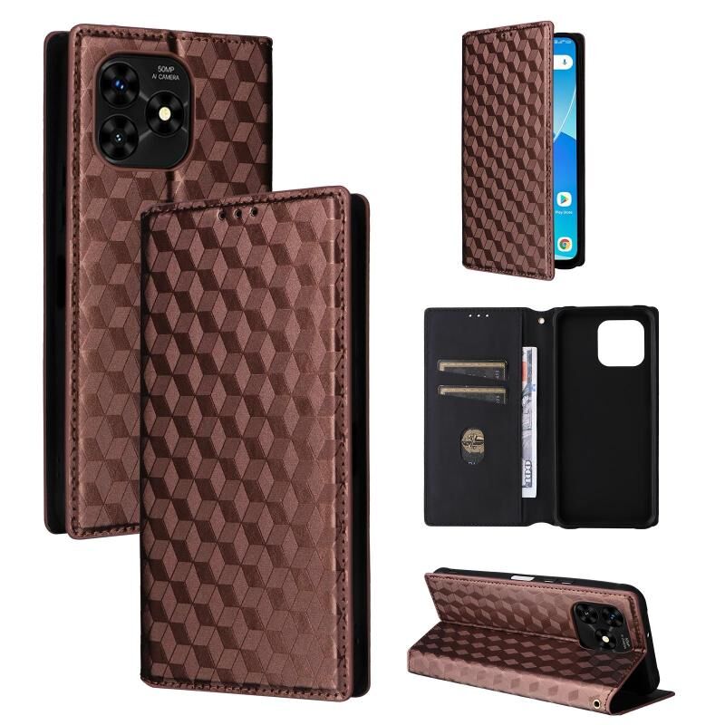 Θήκη τηλεφώνου από δέρμα με ανάγλυφο κυβικό πλέγμα για Umidigi G5 / G5A (Μαύρο)