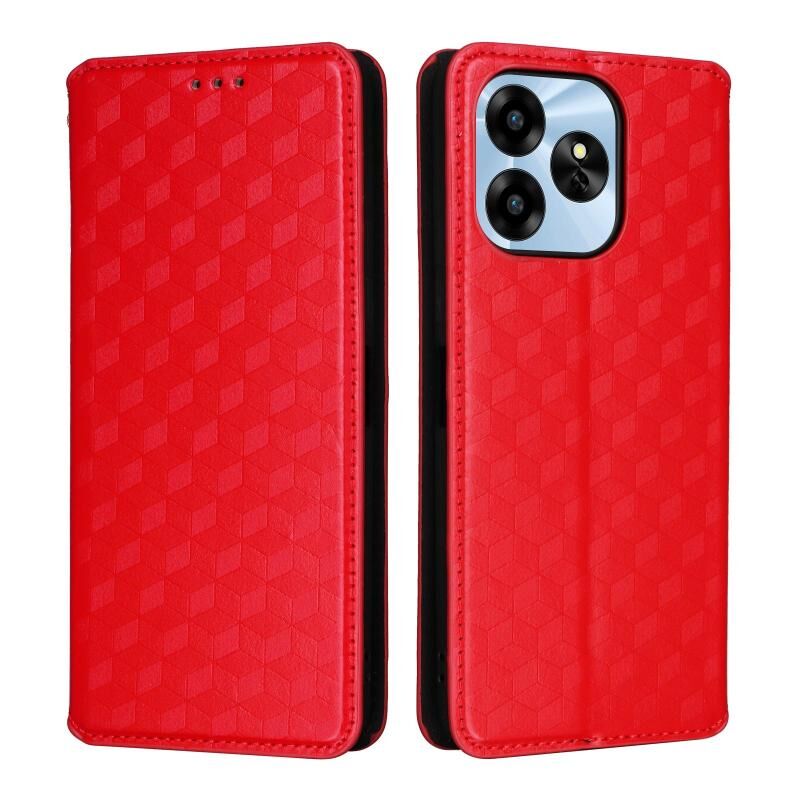 Θήκη τηλεφώνου από δέρμα με ανάγλυφο κυβικό πλέγμα για Umidigi G6 5G (Μαύρο)