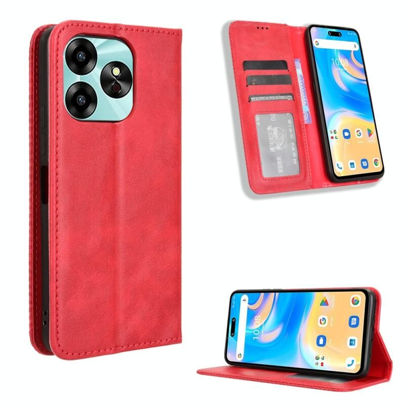 Για Umidigi G6 5G Μαγνητική πόρπη ρετρό υφή δερμάτινη θήκη τηλεφώνου (κόκκινο)