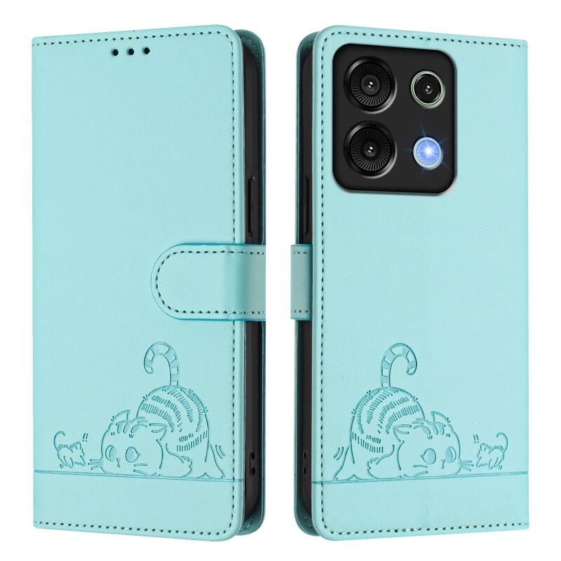 Θήκη τηλεφώνου UMIDIGI G9 5G με ανάγλυφο σχέδιο γάτας και προστασία RFID από δέρμα με κορδόνι (Μέντας Πράσινο)