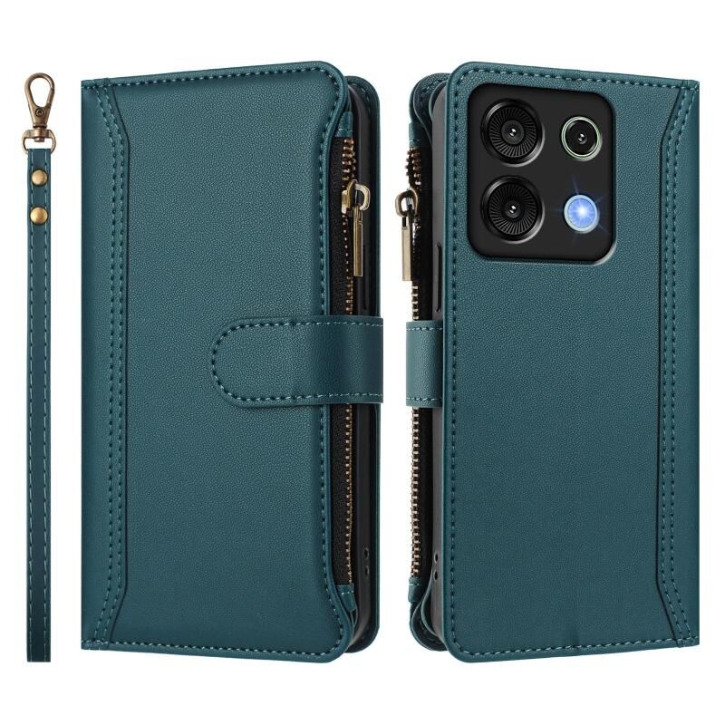 For Umidigi G9 5G / Note 9 5G Magnetic Closure 9 Card Slots Zipper Leather Case with Hand Strap(Dark Green)