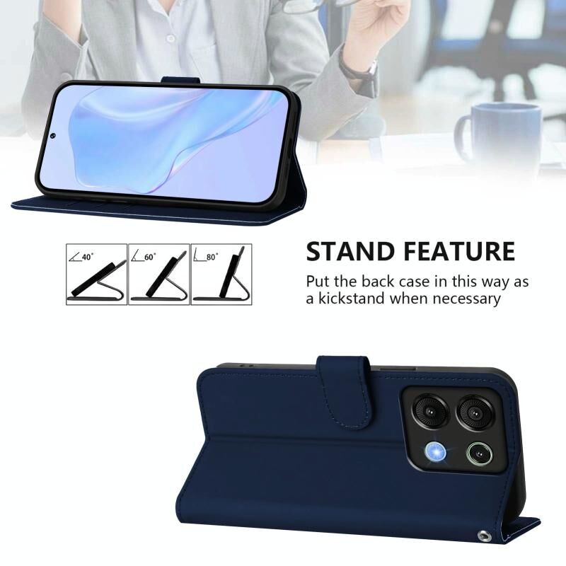 Για Umidigi G9 5G Skin Feel Solid Color δερμάτινη θήκη τηλεφώνου με κορδόνι (Navy Blue)