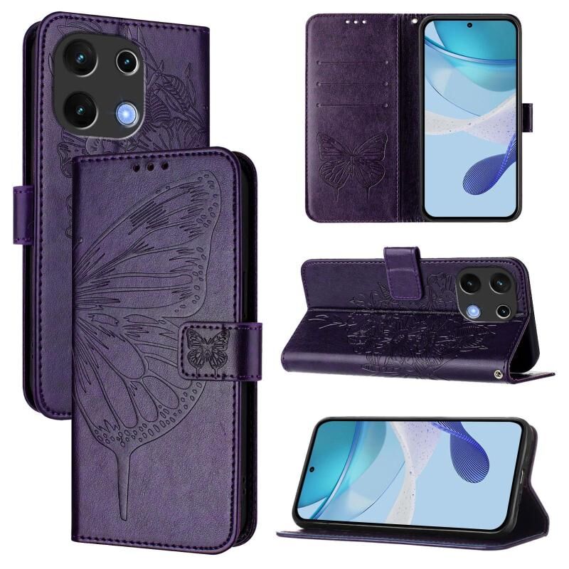 For Umidigi Note 100 Embossed Butterfly Leather Phone Case(Dark Purple)