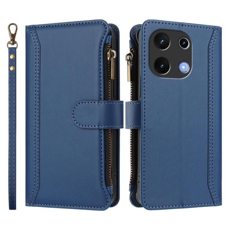 For Umidigi Note 100 Magnetic Closure 9 Card Slots Zipper Leather Case with Hand Strap(Dark Blue)