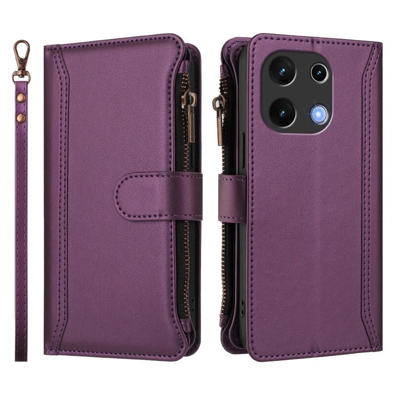 For Umidigi Note 100 Magnetic Closure 9 Card Slots Zipper Leather Case with Hand Strap(Purple)