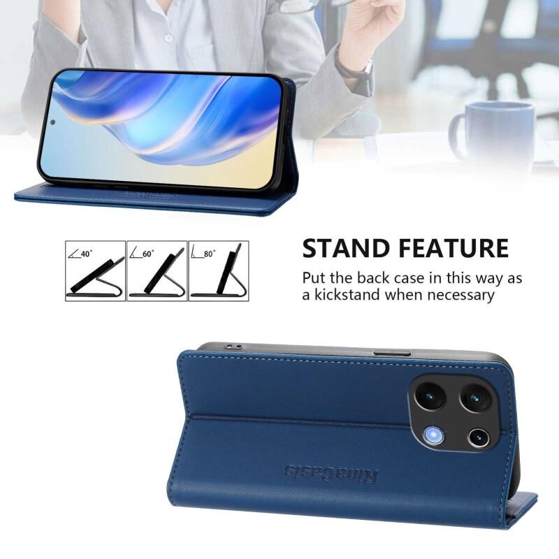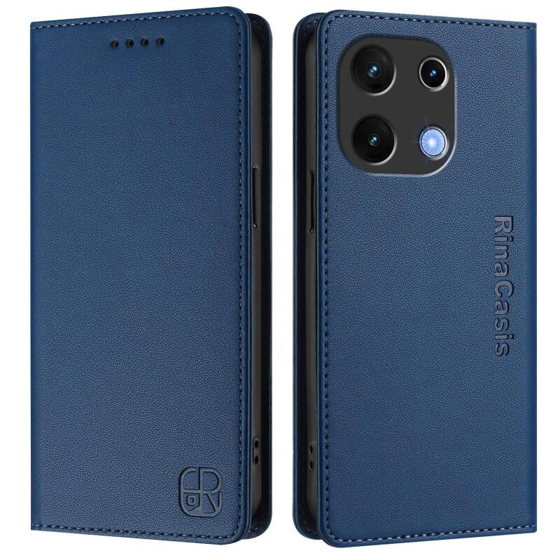 For UMIDIGI Note 100 RC01 Dual-Folded Magnetic Suction RFID Leather Phone Case(Dark Blue)