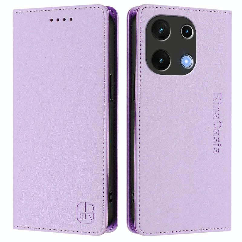 For UMIDIGI Note 100 RC01 Dual-Folded Magnetic Suction RFID Leather Phone Case(Light Purple)