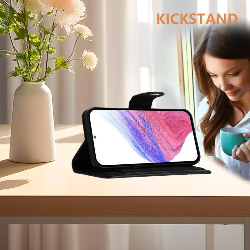 4. Λειτουργία Πορτοφολιού: Η δερμάτινη θήκη είναι εξοπλισμένη με υποδοχές καρτών για την τοποθέτηση καρτών και ενός μικρού ποσού μετρητών.