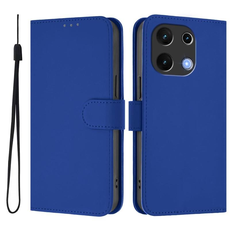 For Umidigi Note 100 Skin Feel Solid Color Leather Phone Case with Lanyard(Dark Blue)