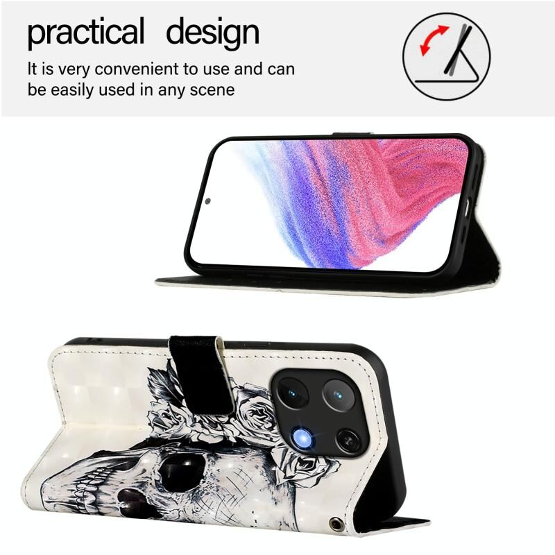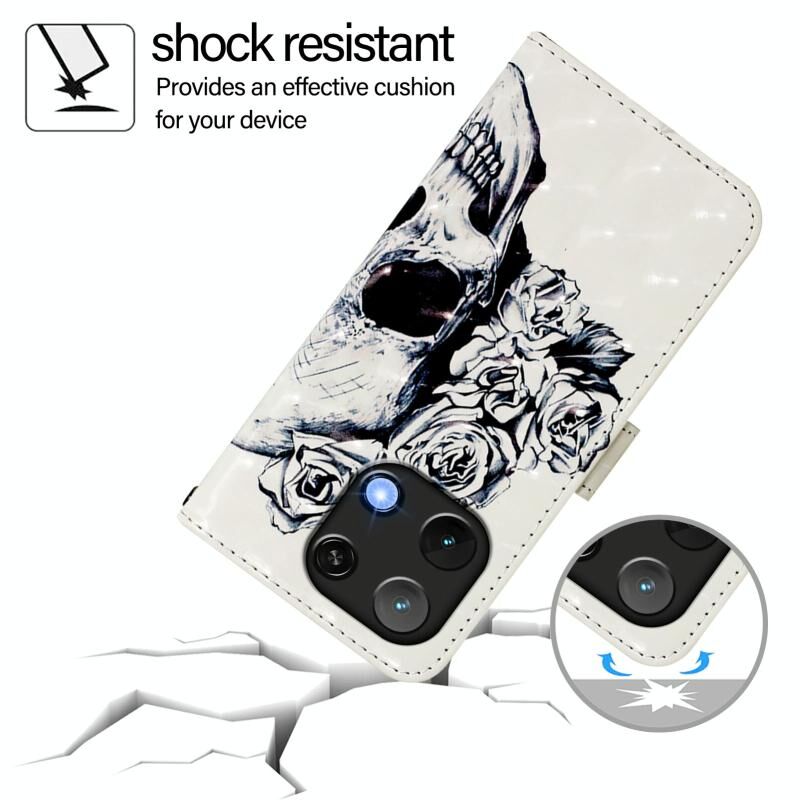 Θήκη τηλεφώνου δερμάτινη, οριζόντιας αναδίπλωσης, με τρισδιάστατη ζωγραφική για Umidigi Note 90 (Κρανίο)