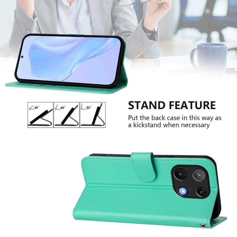 Για Umidigi Σημείωση 90 δέρμα αίσθηση στερεό χρώμα δερμάτινη θήκη τηλεφώνου με κορδόνι (πράσινο)