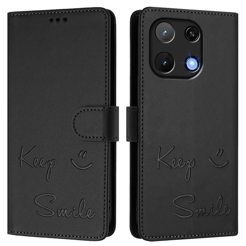 Για Umidigi Σημείωση 90 Χαμόγελο ανάγλυφο RFID δερμάτινη θήκη τηλεφώνου (Μαύρο)