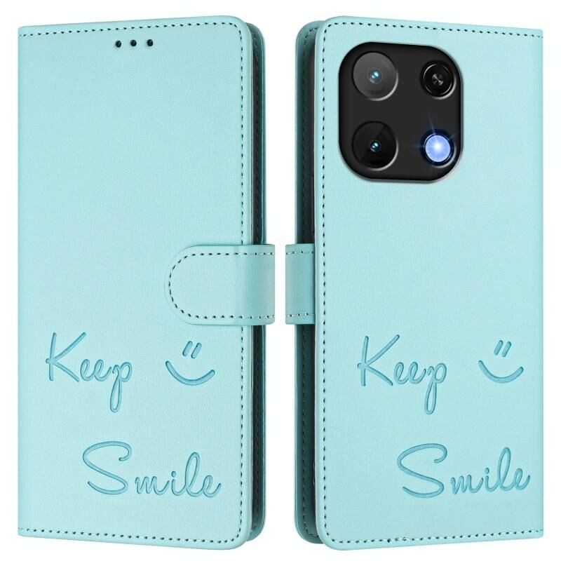 Για Umidigi Σημείωση 90 Χαμόγελο ανάγλυφο RFID δερμάτινη θήκη τηλεφώνου (πράσινο χρώμα)
