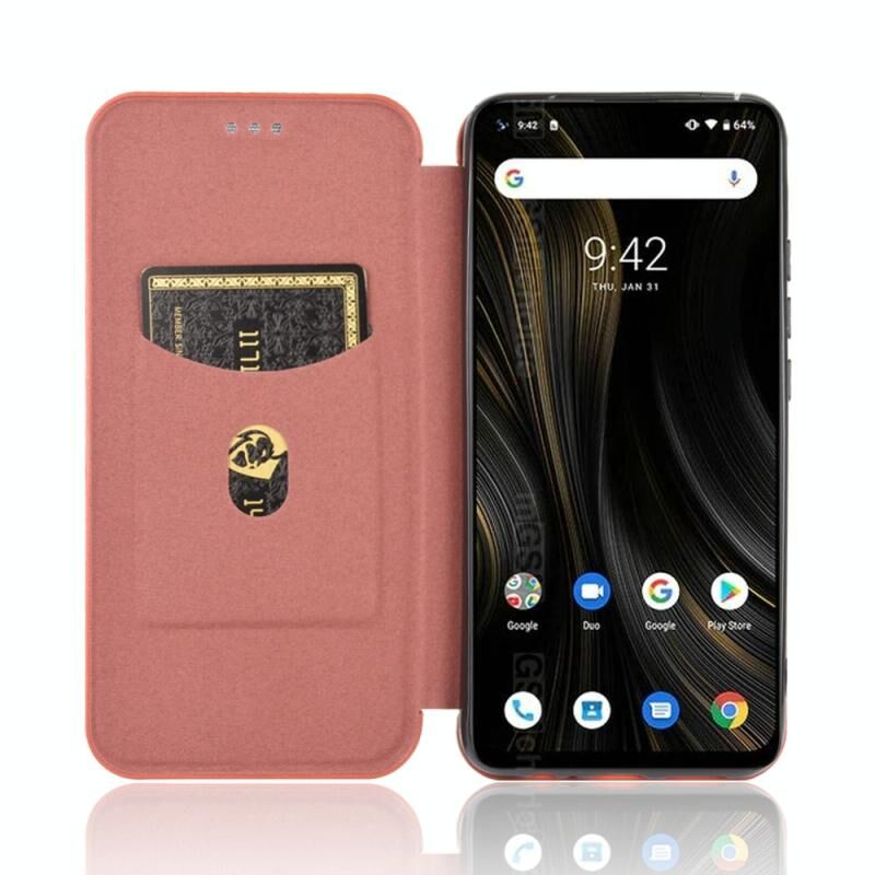 Για UMIDIGI Power 3 Carbon Fiber Texture Οριζόντια Flip TPU + PC + PU δέρμα υπόθεση με υποδοχή κάρτας (καφέ)