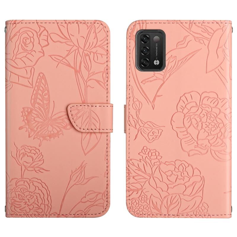 Θήκη τηλεφώνου Umidigi Power 5 με δερμάτινη υφή, ανάγλυφο σχέδιο πεταλούδας και παιώνιας (Κόκκινο)