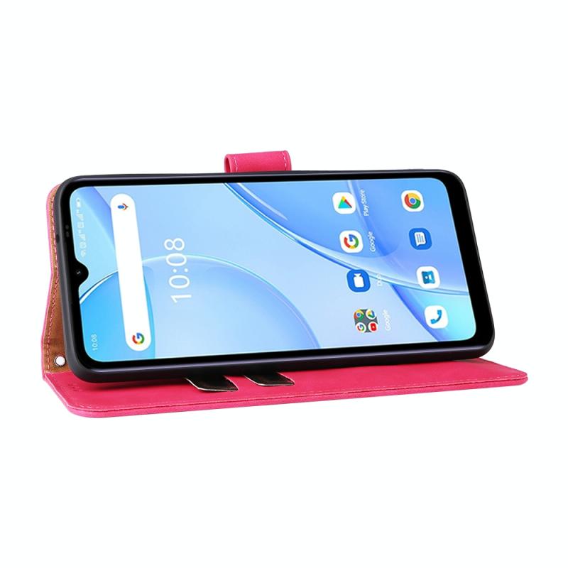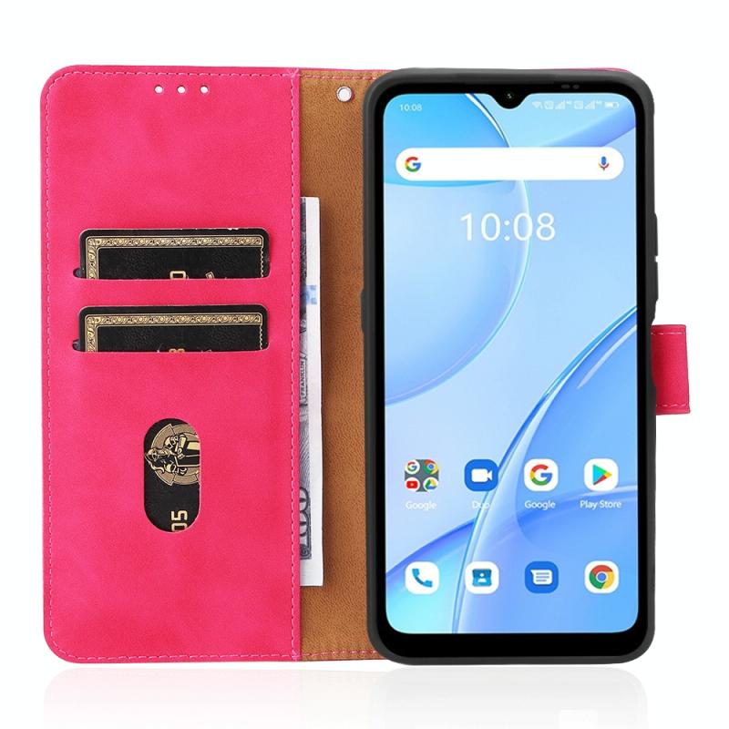 Θήκη κινητού τηλεφώνου Umidigi Power 5S με μαγνητικό κούμπωμα και υφή μοσχαριού από PU (Ροζέ κόκκινο)