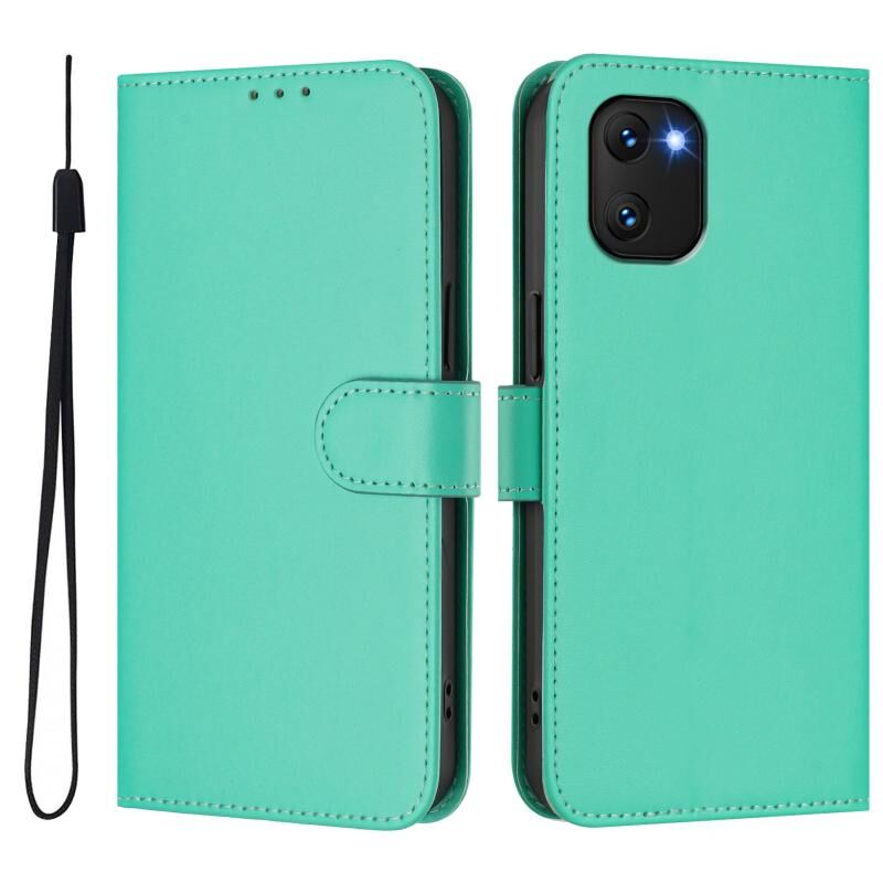 Για το Umidigi Power 7 / 7S Skin Feel Solid Color δερμάτινη θήκη τηλεφώνου με κορδόνι (πράσινο)