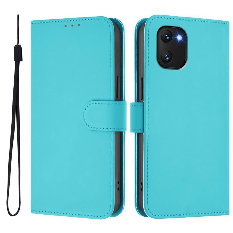 Για το Umidigi Power 7 / 7S Skin Feel Solid Color δερμάτινη θήκη τηλεφώνου με κορδόνι (Lake Blue)