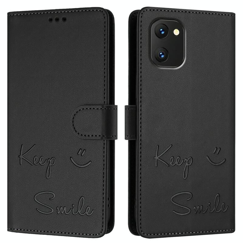 Για Umidigi Power 7 / 7S Χαμόγελο ανάγλυφο RFID δερμάτινη θήκη τηλεφώνου (Μαύρο)