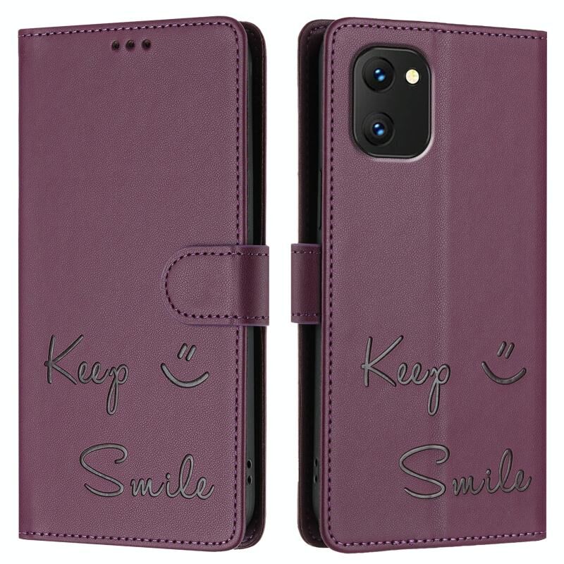 Για Umidigi Power 7 / 7S Χαμόγελο ανάγλυφο RFID δερμάτινη θήκη τηλεφώνου (Violet)