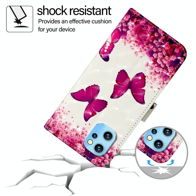 Θήκη τηλεφώνου δερμάτινη, οριζόντιας αναδίπλωσης, με τρισδιάστατη ζωγραφική για Umidigi Power 7 Max (Ροζ Πεταλούδα)