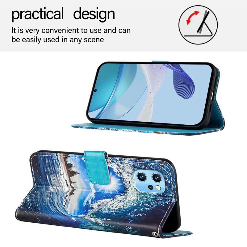 Θήκη τηλεφώνου UMIDIGI Power 7 Max από δέρμα με απλή ύφανση και πολύχρωμο σχέδιο (Κύματα και Ήλιος)