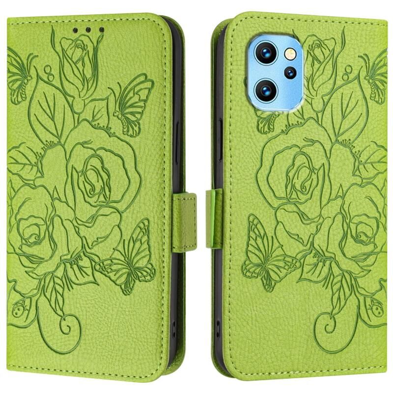 Για UMIDIGI Power 7 Max ανάγλυφο Rose RFID Anti-theft δερμάτινη θήκη τηλεφώνου (Πράσινο)