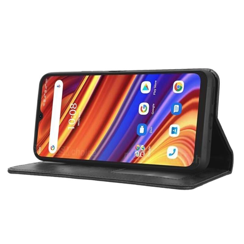 Για UMIDIGI Power 7 Max Μαγνητική πόρπη ρετρό υφή δερμάτινη θήκη τηλεφώνου (Μαύρο)