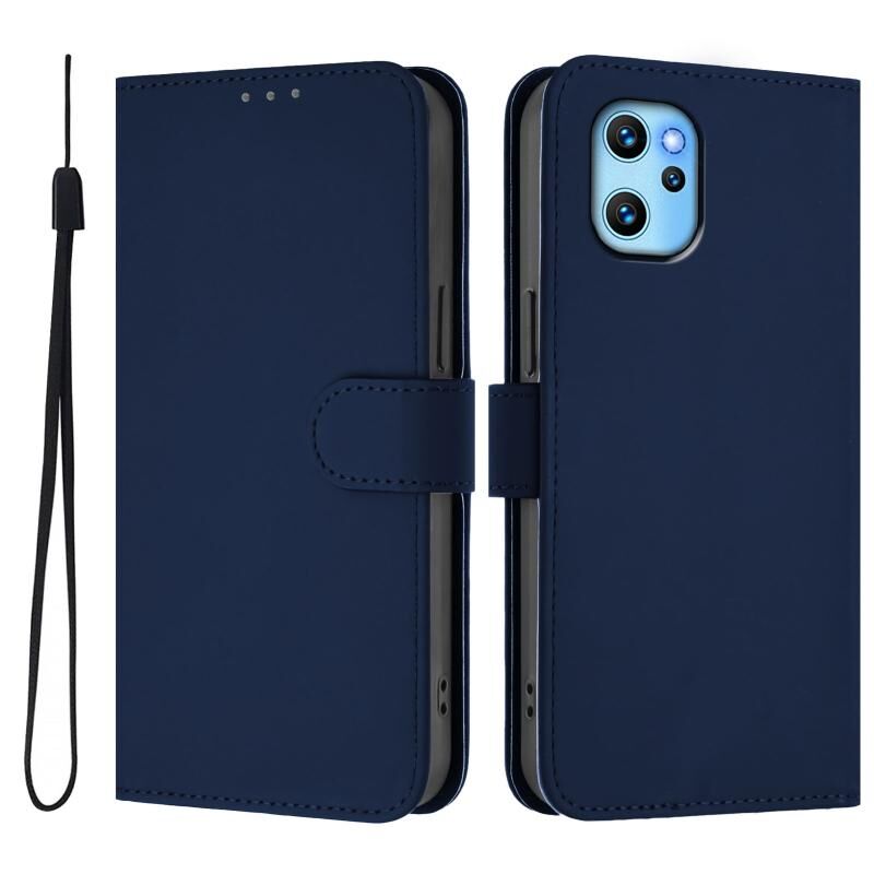 Για το Umidigi Power 7 Max Skin Feel Solid Color δερμάτινη θήκη τηλεφώνου με κορδόνι (Navy Blue)