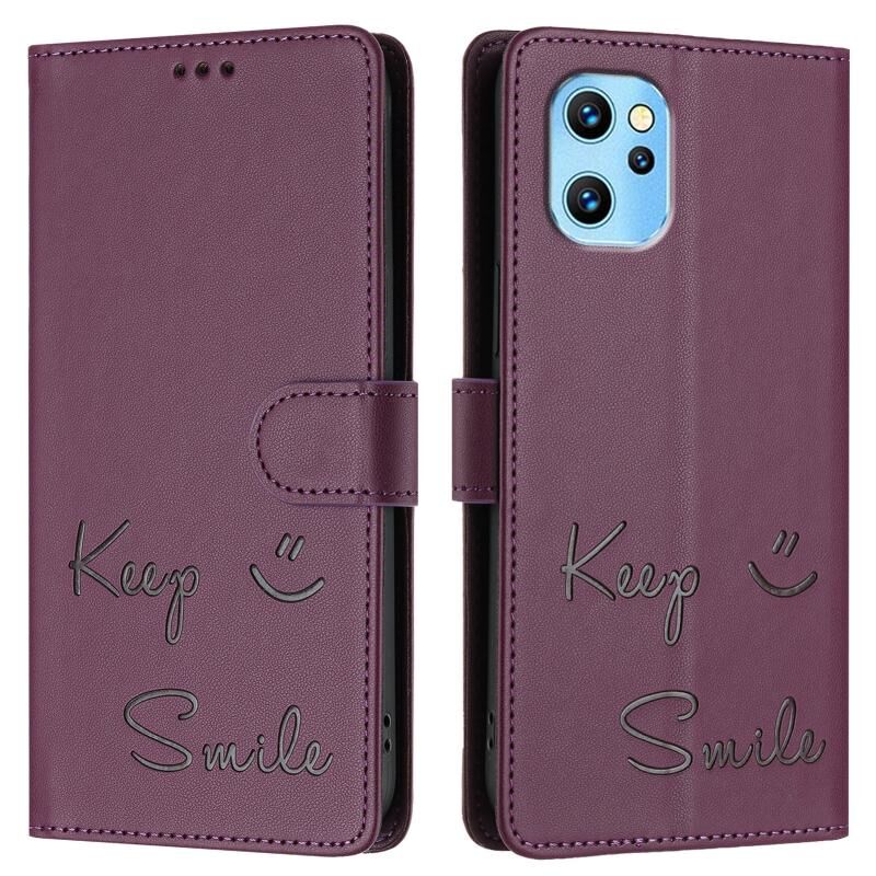 Για Umidigi Power 7 Max Χαμόγελο ανάγλυφο RFID δερμάτινη θήκη τηλεφώνου (Violet)