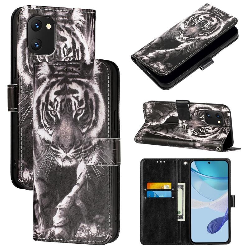 Θήκη τηλεφώνου από δέρμα με απλή ύφανση και έγχρωμο σχέδιο για UMIDIGI Power 7 / Power 7S (Τριαντάφυλλα σε μαύρο φόντο)
