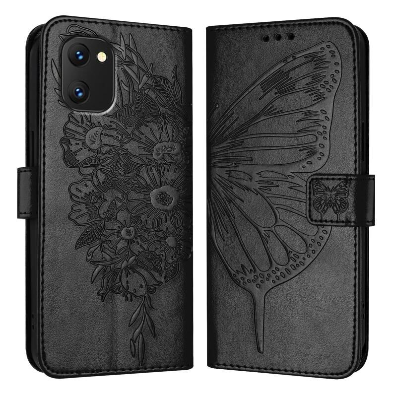 Για UMIDIGI Power 7 / Power 7S ανάγλυφη πεταλούδα δερμάτινη θήκη τηλεφώνου (μαύρο)