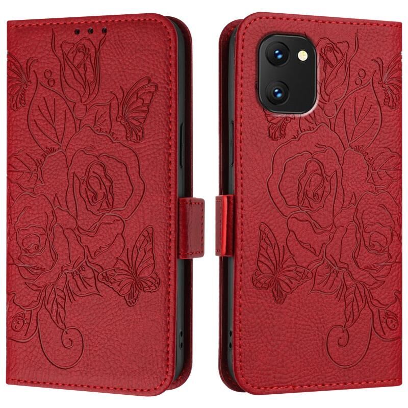 Για UMIDIGI Power 7 / Power 7S Ανάγλυφο Rose RFID Anti-theft Δερμάτινη θήκη τηλεφώνου (κόκκινο)