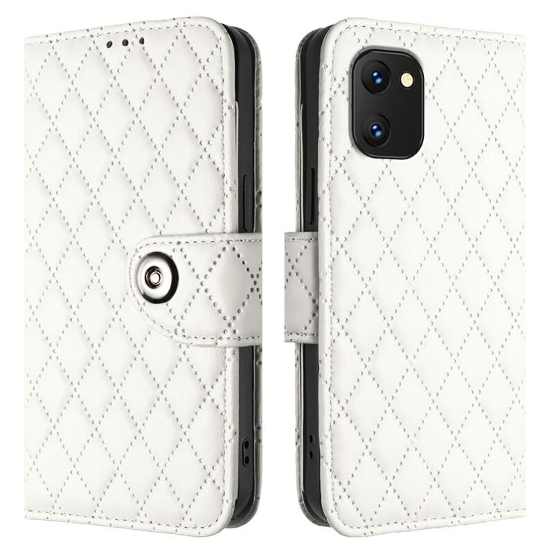 Για UMIDIGI Power 7 / Power 7S Rhombic Texture Flip δερμάτινη θήκη τηλεφώνου με κορδόνι (Λευκό)