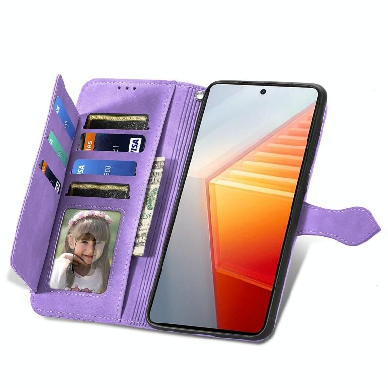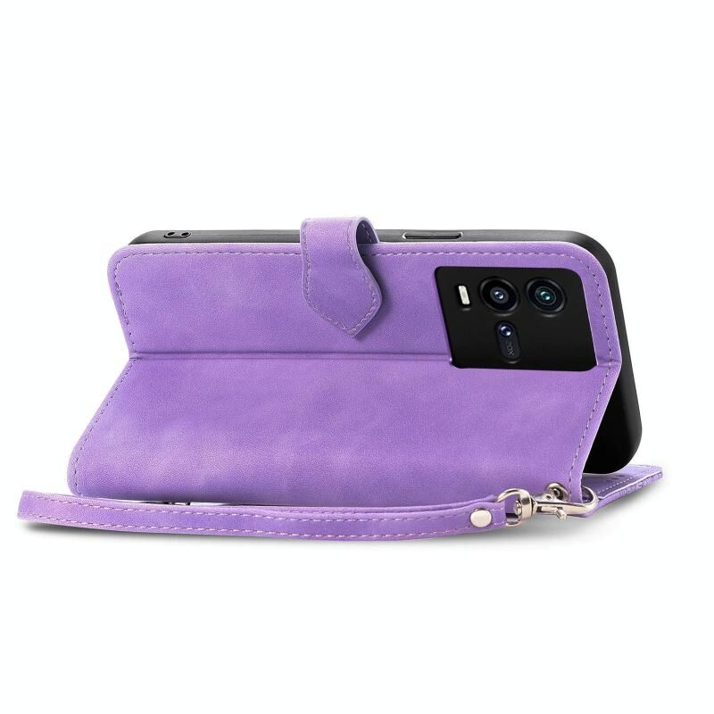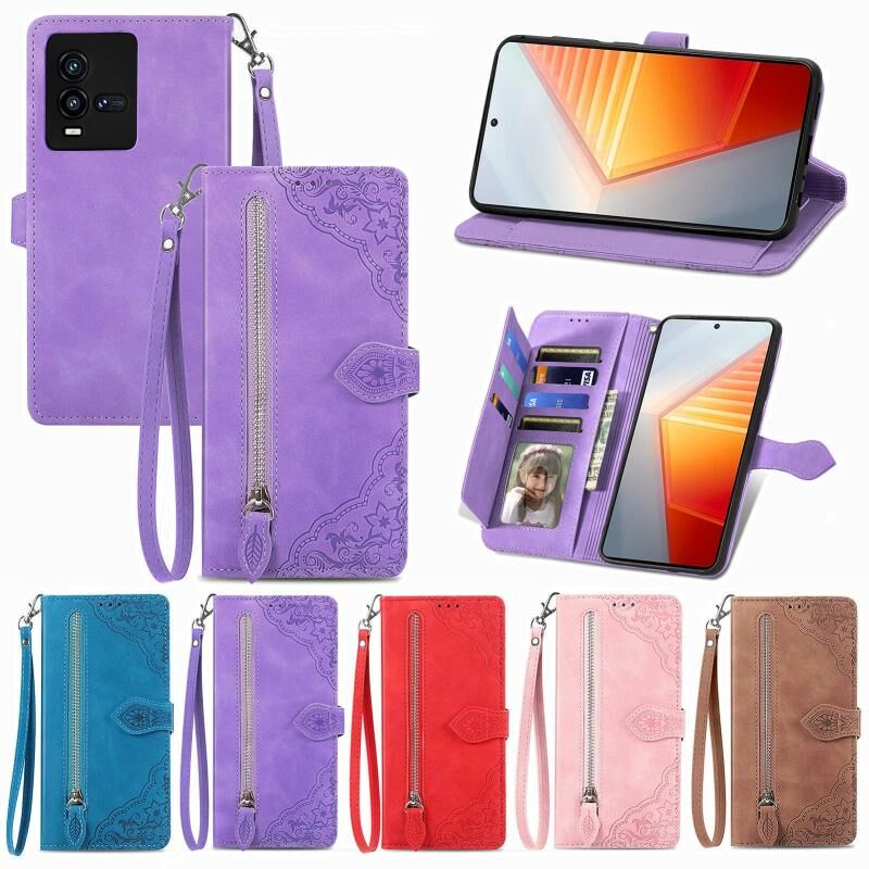 Για vivo iQOO 10 Ανάγλυφο λουλούδι Shockproof δέρμα τηλέφωνο υπόθεση (Μωβ)