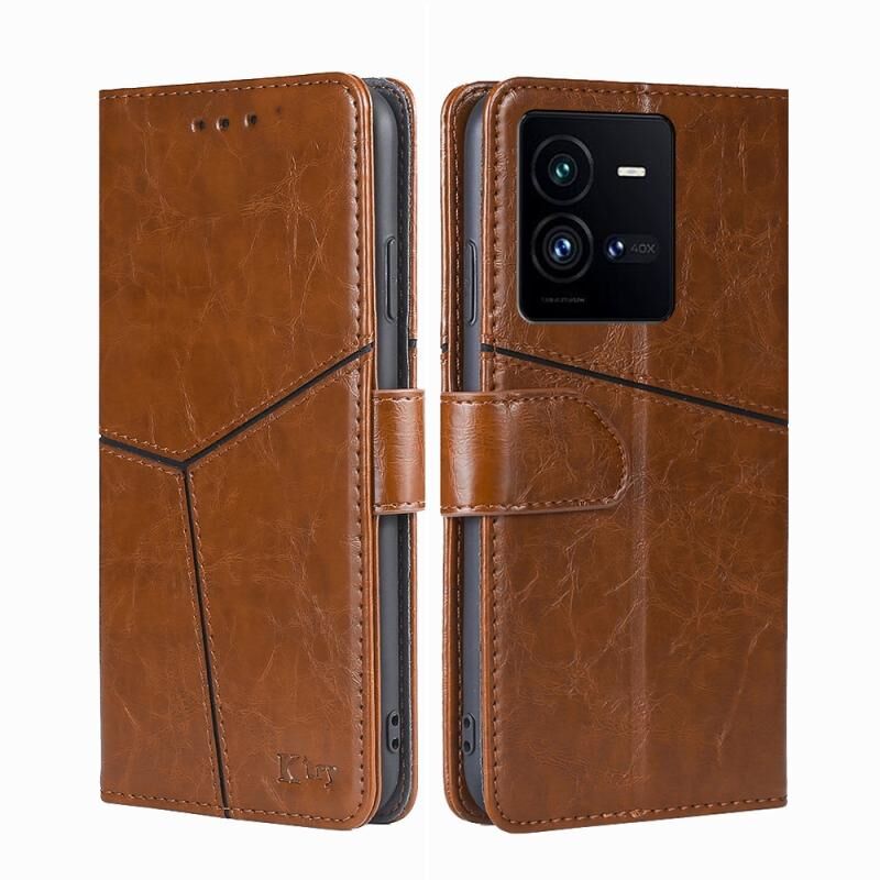 Για vivo iQOO 10 Pro 5G γεωμετρική ραφή δερμάτινη θήκη τηλεφώνου (Ανοιχτό καφέ)