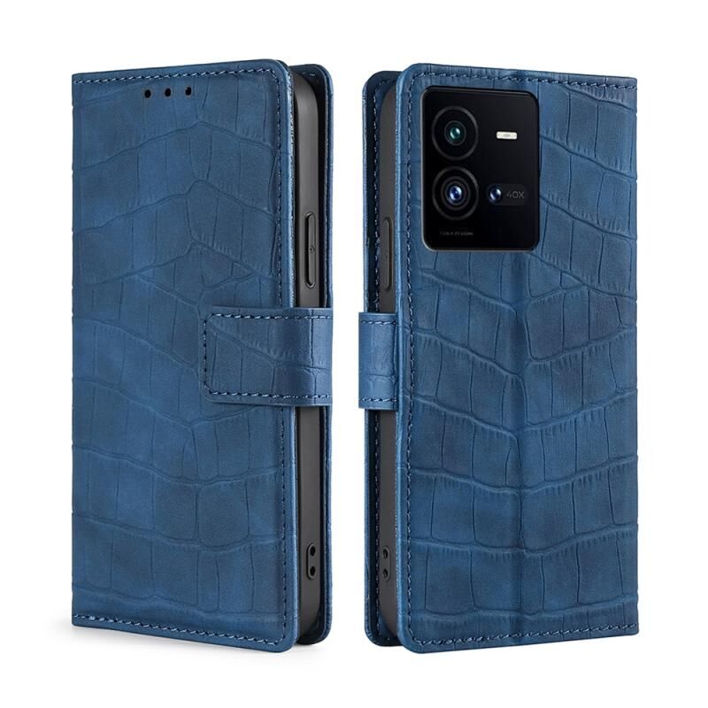 Θήκη τηλεφώνου από δέρμα με μαγνητικό κούμπωμα και υφή κροκόδειλου για vivo iQOO 10 Pro 5G (Μπλε)