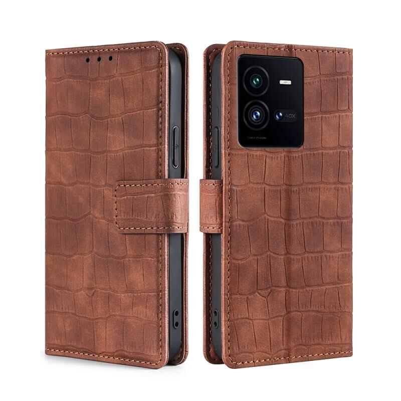 Θήκη τηλεφώνου από δέρμα με μαγνητικό κούμπωμα και υφή κροκόδειλου για vivo iQOO 10 Pro 5G (Καφέ)