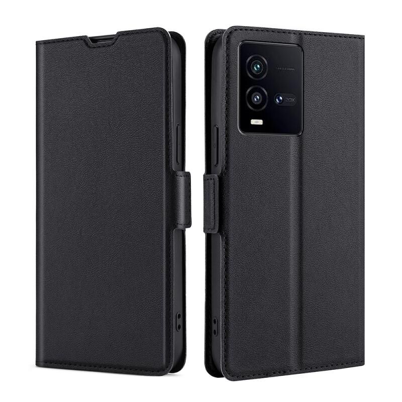 Για vivo iQOO 10 Ultra-thin Voltage Side Πόρπη Δερμάτινη θήκη τηλεφώνου (Μαύρο)