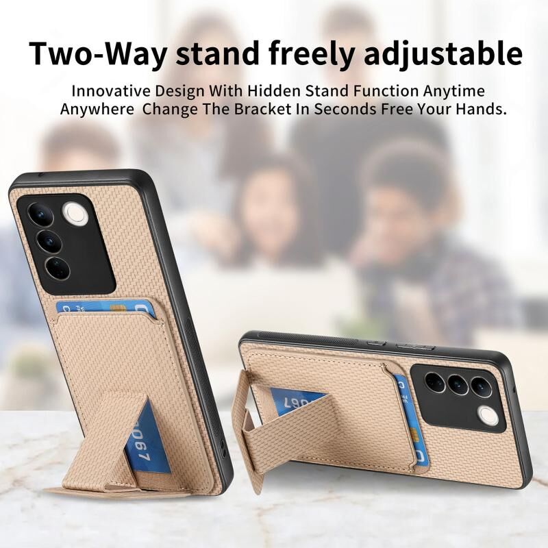 Θήκη τηλεφώνου για vivo iQOO 11 5G από ανθρακονήματα με κάρτες και πτυσσόμενη βάση (Χακί)