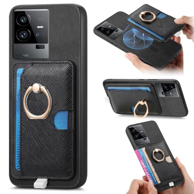 Θήκη τηλεφώνου MagSafe για vivo iQOO 11 Pro 5G, Ρετρό Δερμάτινη με Σταυρωτό Σχέδιο και Ενσωματωμένη Θήκη Κάρτας στο Πλαϊνό Μέρος (Μαύρο)