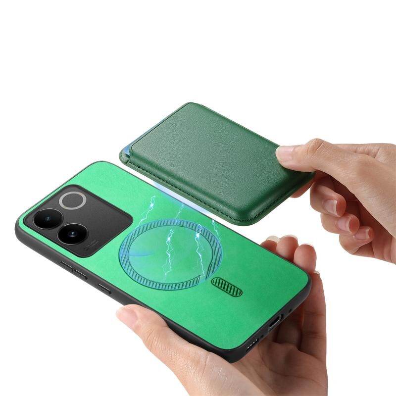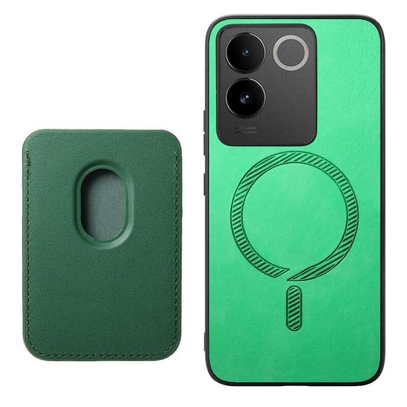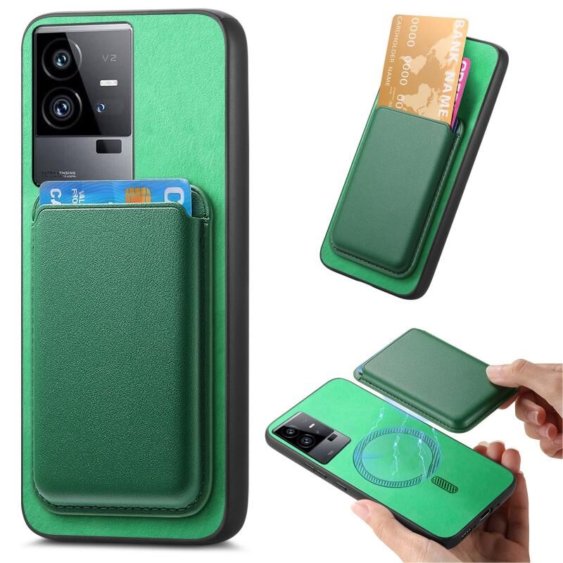 Για vivo iQOO 11 Pro 5G Retro Magsafe κάρτα τσάντα PU πίσω κάλυμμα τηλέφωνο υπόθεση (πράσινο)